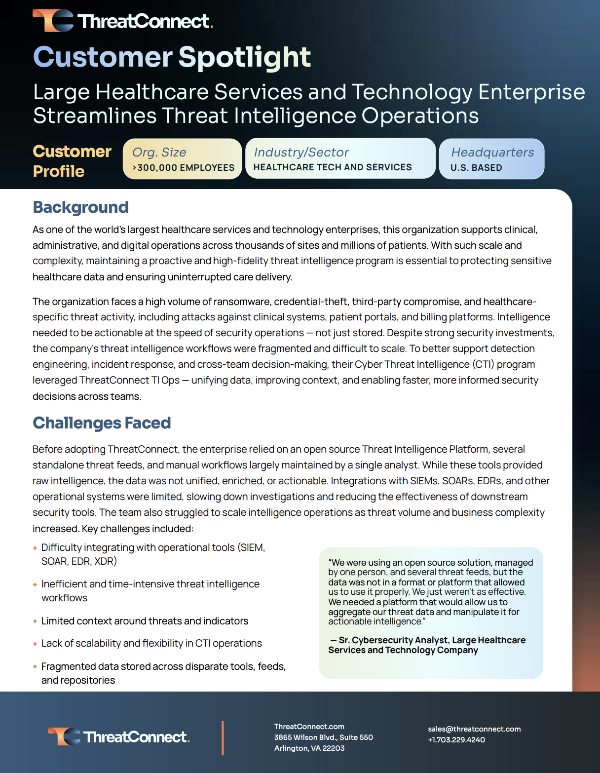 Collecting threat intelligence is not enough—you need to act on it. One of the world’s largest healthcare services and technology enterprises faced a familiar problem: fragmented data, manual workflows, and too many false positives slowing incident response.