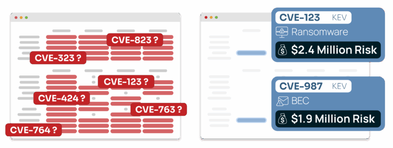 - Quantify vulnerabilities by business impact. “Which exposures could actually cost you millions if exploited?”